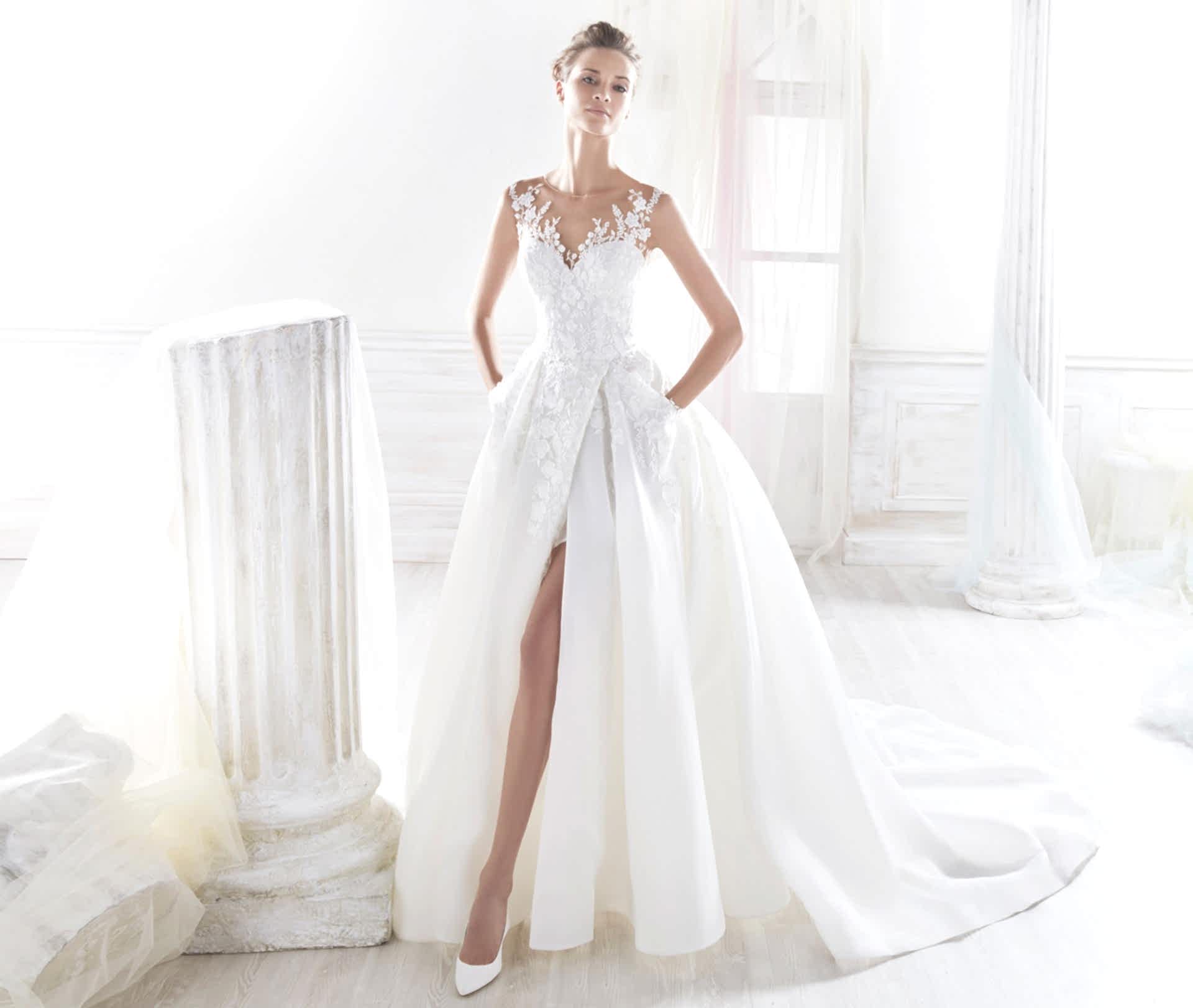 Offering both freedom of movement and a modern edge, slit wedding dresses are a signature feature in Jabo Bridal’s bold collections. A thigh-high or subtle side slit elegantly reveals the leg, adding a striking detail—especially in photographs. When combined with mermaid, sheath, or A-line silhouettes, slit gowns exude both style and confidence.