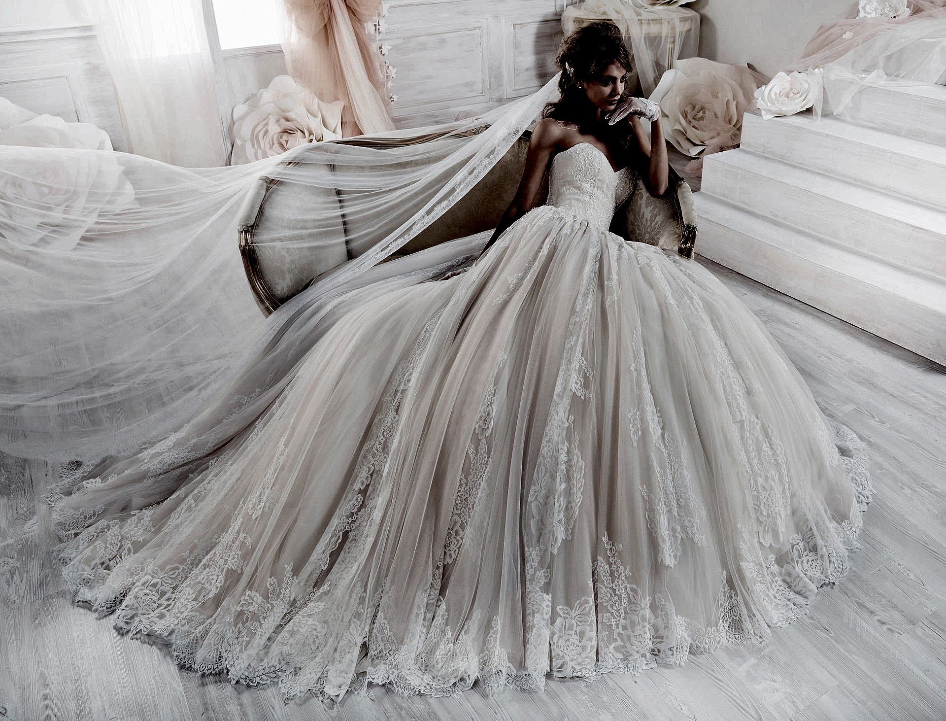 Gelinlikler, stil ve vücut ölçülerine göre özel olarak tasarlanmaktadır.